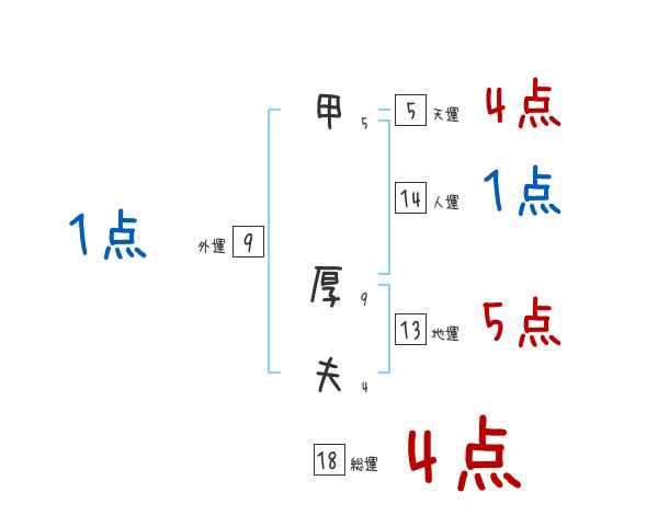 甲厚夫さんの画数の鑑定結果