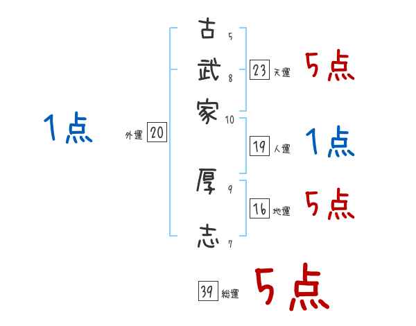 古武家厚志さんの画数の鑑定結果