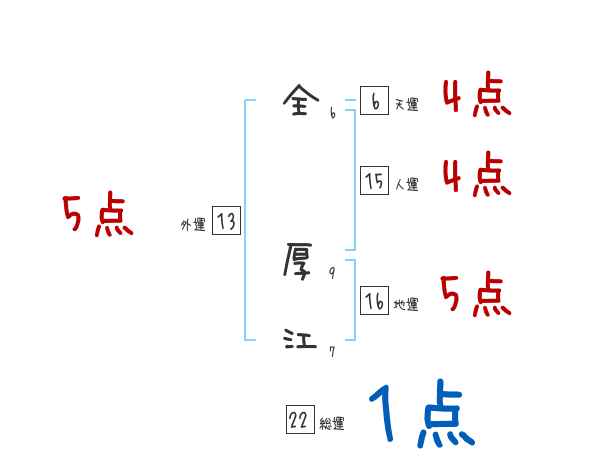 全厚江さんの画数の鑑定結果