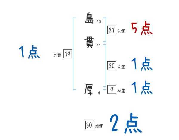 島貫厚さんの画数の鑑定結果