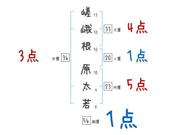 嵯峨根原太若さんの画数の鑑定結果