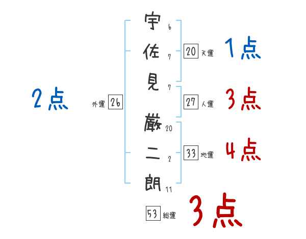 宇佐見厳二朗さんの画数の鑑定結果