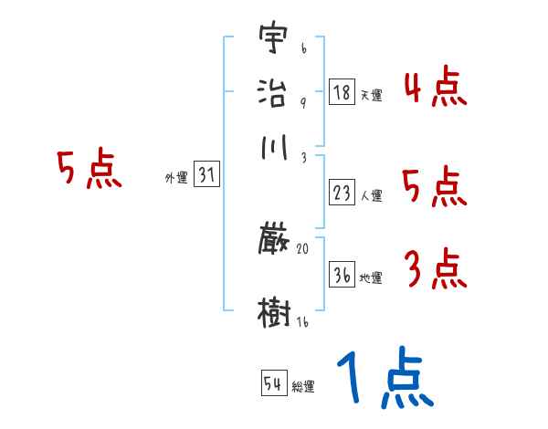 宇治川厳樹さんの画数の鑑定結果