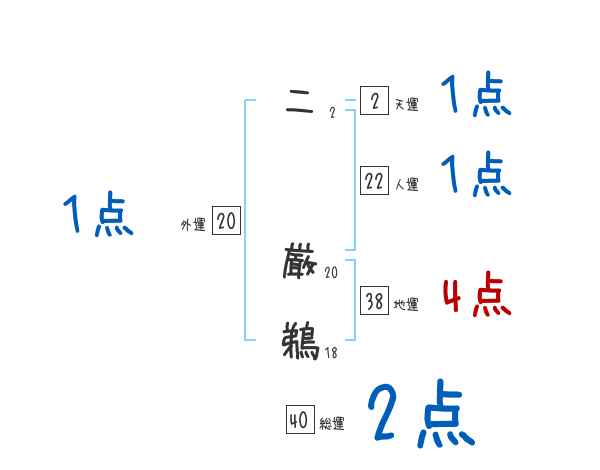 二厳鵜さんの画数の鑑定結果