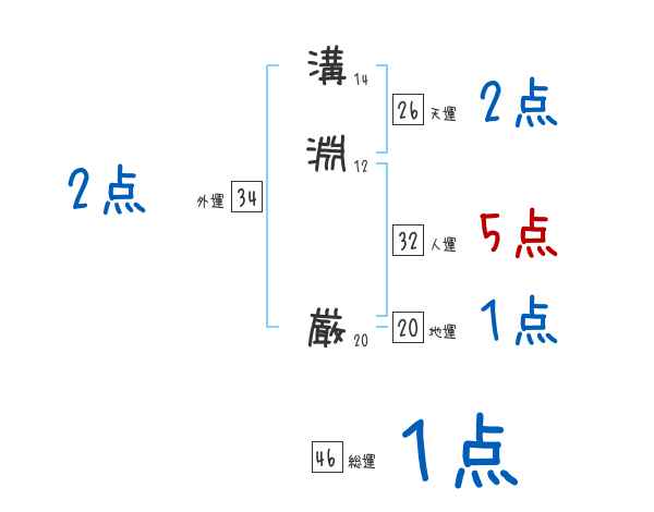 天運![]() | 溝淵厳さんの天運は26画の2つ星!波瀾万丈かも。信頼できる人を大事にしましょう。 家系が持つ宿命的な運勢を表します。祖先から受け継いだ苗字ですので自分の力が及びません。家柄を象徴します。 |