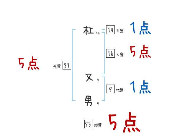 杠又男さんの画数の鑑定結果