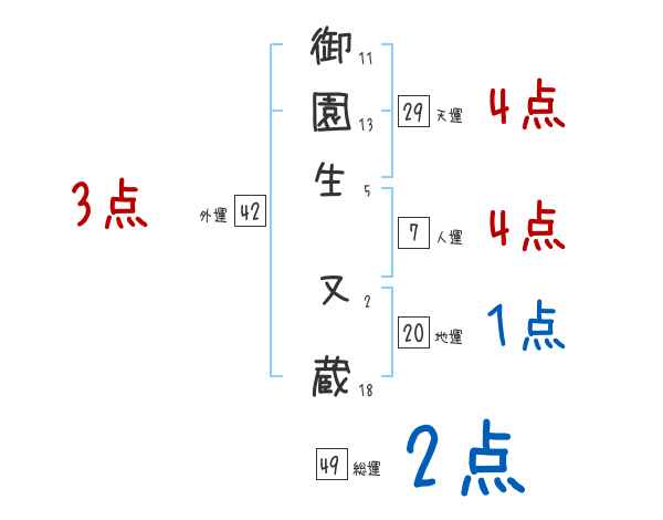 家系が持つ宿命的な運勢を表します。祖先から受け継いだ苗字ですので自分の力が及びません。家柄を象徴します。