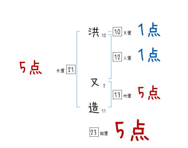 天運![]() | 洪又造さんの天運は10画の1つ星!不安を感じやすい傾向。ストレスを抱えないように注意しましょう。 家系が持つ宿命的な運勢を表します。祖先から受け継いだ苗字ですので自分の力が及びません。家柄を象徴します。 |