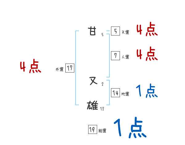 甘又雄さんの画数の鑑定結果