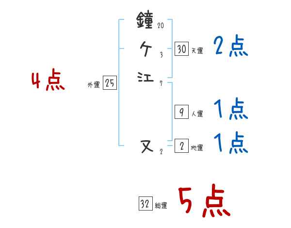 天運![]() | 鐘ケ江又さんの天運は30画の2つ星!浮き沈みの激しさに注意しましょう。 家系が持つ宿命的な運勢を表します。祖先から受け継いだ苗字ですので自分の力が及びません。家柄を象徴します。 |