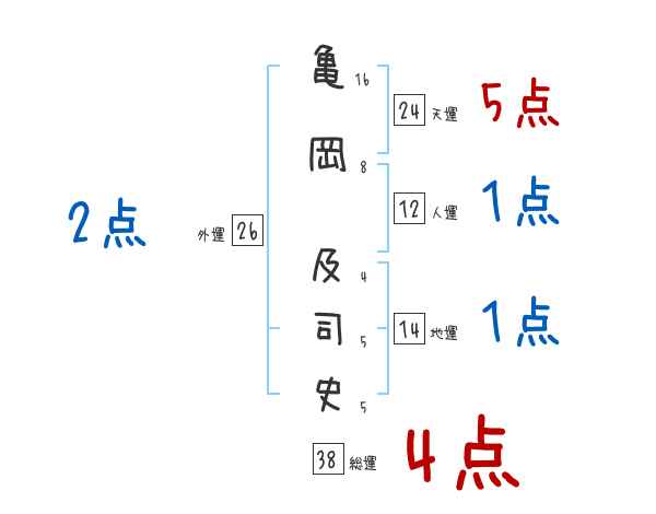 亀岡及司史さんの画数の鑑定結果