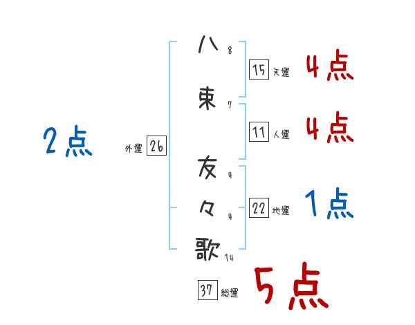外運![]() | 八束友々歌さんの外運は26画の2つ星!波瀾万丈かも。信頼できる人を大事にしましょう。 生活面を象徴する運勢です。外部から受ける影響力を表し、結婚運、家庭運や職場、環境への順応性を表します。 |