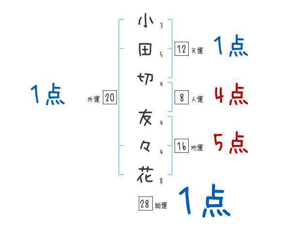 小田切友々花さんの画数の鑑定結果