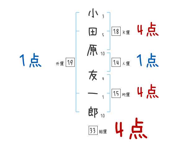 小田原友一郎さんの画数の鑑定結果