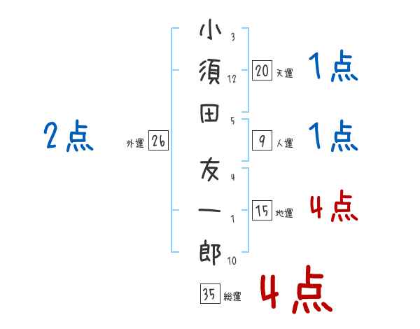 小須田友一郎さんの画数の鑑定結果