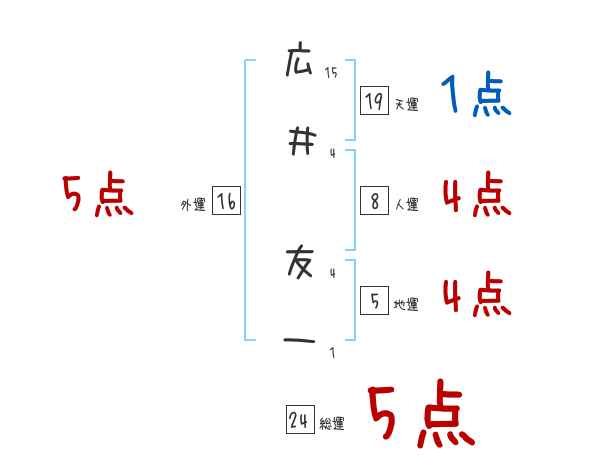 広井友一さんの画数の鑑定結果