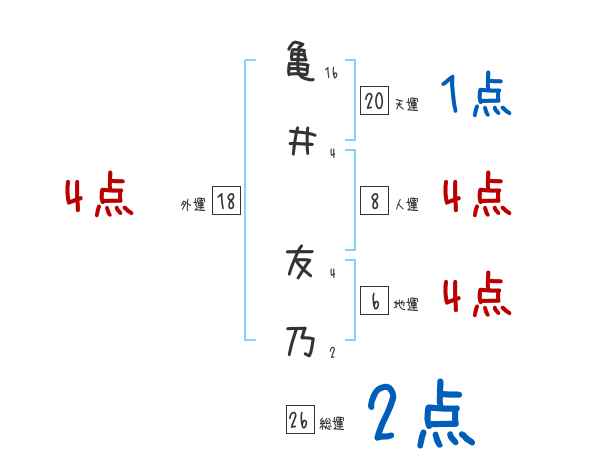 亀井友乃さんの画数の鑑定結果