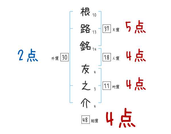 地運![]() | 根路銘友之介さんの地運は11画の4つ星!着実に富や地位を得る幸運な人生。 個性を表す基礎的な運勢です。性格形成や対人関係、行動力など家庭環境に影響されます。主に誕生してから20歳くらいまでの若年期の運勢を表します。 |