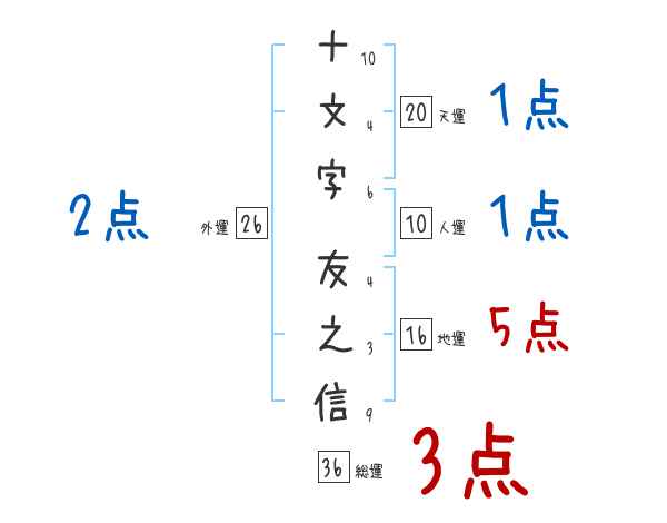 総運![]() | 十文字友之信さんの総運は36画の3つ星!先見性が豊かです。多少神経質で苦労することも。 あなたの人生を表す1番重要な運勢です。生涯を通じて影響する総合運となり、主に50歳以降の晩年期に影響を及ぼします。 |