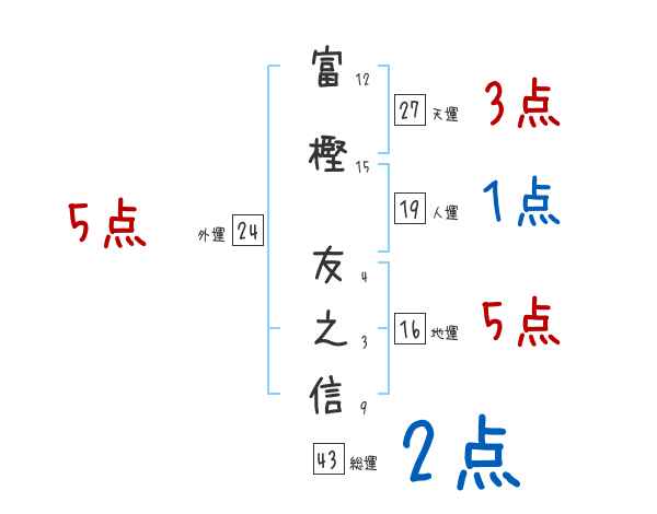 富樫友之信さんの画数の鑑定結果