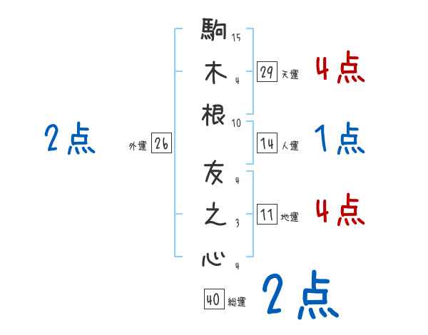 家系が持つ宿命的な運勢を表します。祖先から受け継いだ苗字ですので自分の力が及びません。家柄を象徴します。