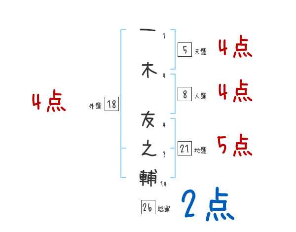 天運![]() | 一木友之輔さんの天運は5画の4つ星!健康で安泰。協調性に優れ、財産に恵まれる。 家系が持つ宿命的な運勢を表します。祖先から受け継いだ苗字ですので自分の力が及びません。家柄を象徴します。 |