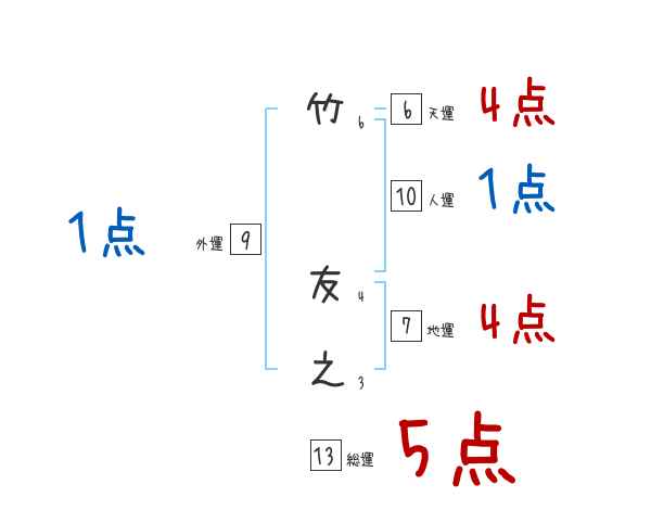 竹友之さんの画数の鑑定結果