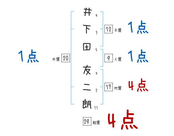 井下田友二朗さんの画数の鑑定結果