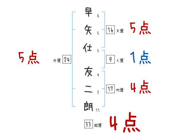 早矢仕友二朗さんの画数の鑑定結果