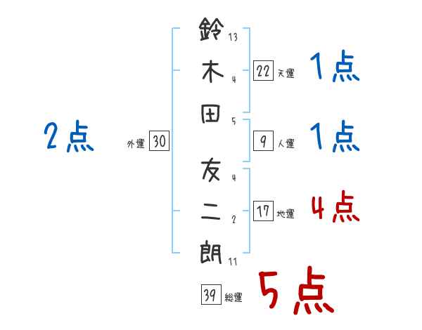 鈴木田友二朗さんの画数の鑑定結果