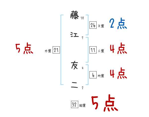 藤江友二さんの画数の鑑定結果