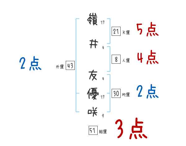 嶺井友優咲さんの画数の鑑定結果
