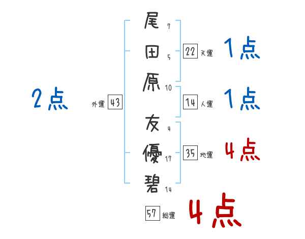 尾田原友優碧さんの画数の鑑定結果
