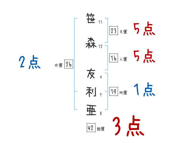 総運![]() | 笹森友利亜さんの総運は42画の3つ星!病気に注意。多芸であるが消極的でおとなしい。 あなたの人生を表す1番重要な運勢です。生涯を通じて影響する総合運となり、主に50歳以降の晩年期に影響を及ぼします。 |