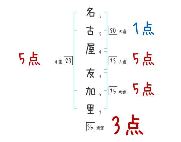 名古屋友加里さんの画数の鑑定結果