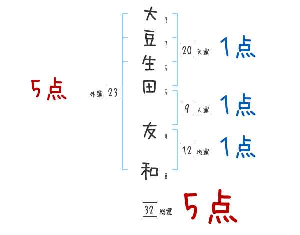 大豆生田友和さんの画数の鑑定結果