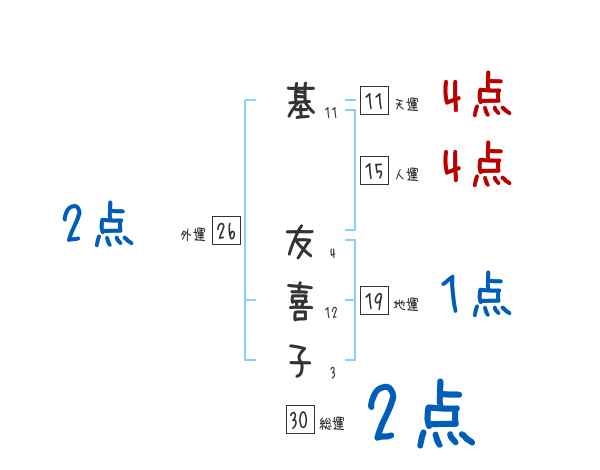 基友喜子さんの画数の鑑定結果