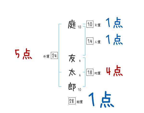 庭友太郎さんの画数の鑑定結果