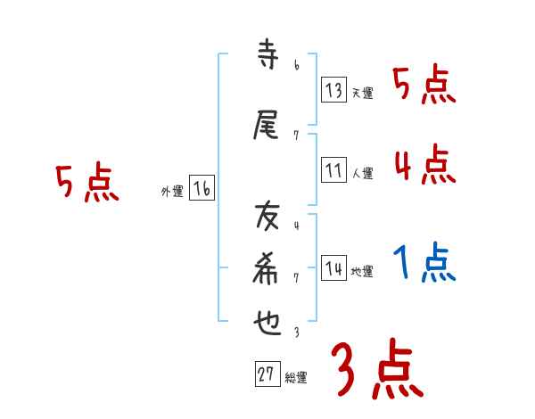 寺尾友希也さんの画数の鑑定結果