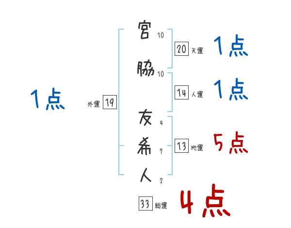 宮脇友希人さんの画数の鑑定結果