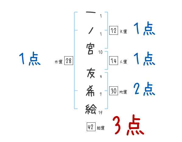 一ノ宮友希絵さんの画数の鑑定結果