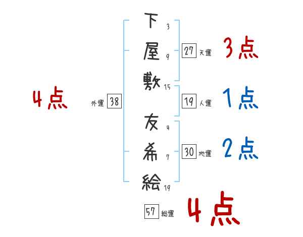 下屋敷友希絵さんの画数の鑑定結果