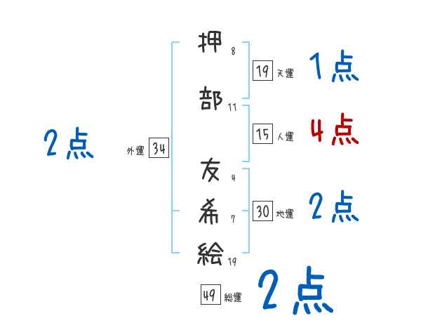 外運![]() | 押部友希絵さんの外運は34画の2つ星!独創性に優れるが、自尊心が強く災難に注意しましょう。 生活面を象徴する運勢です。外部から受ける影響力を表し、結婚運、家庭運や職場、環境への順応性を表します。 |