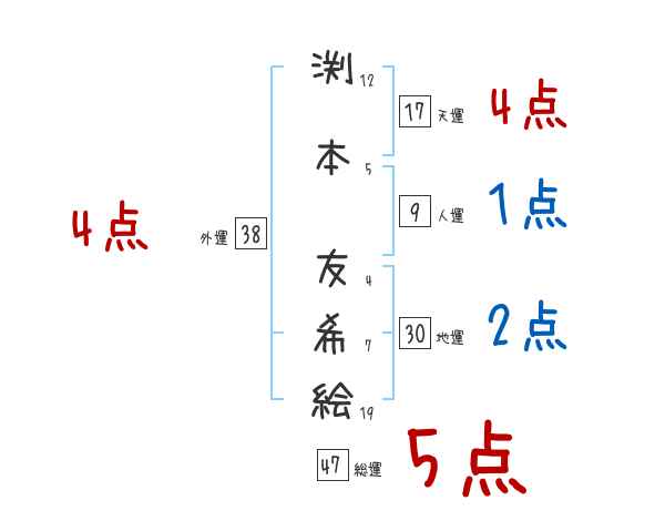 総運![]() | 渕本友希絵さんの総運は47画の5つ星!実力が開花し発展する円満な人生。財に恵まれる。 あなたの人生を表す1番重要な運勢です。生涯を通じて影響する総合運となり、主に50歳以降の晩年期に影響を及ぼします。 |