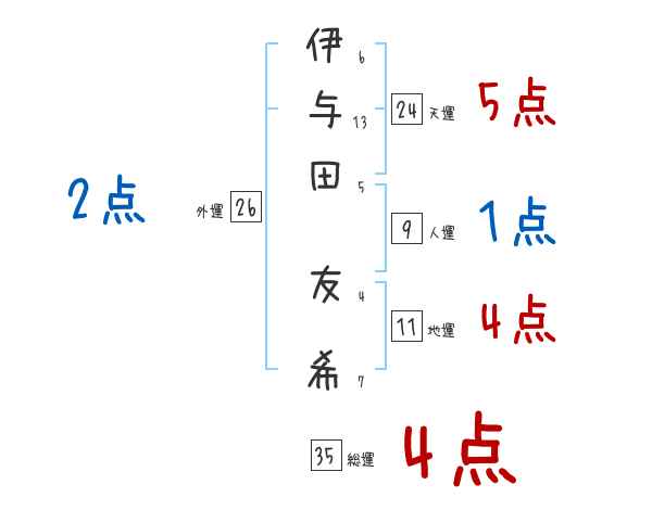 伊与田友希さんの画数の鑑定結果