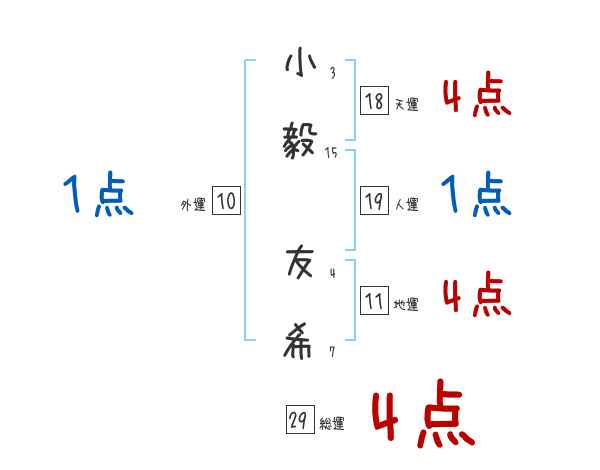 小毅友希さんの画数の鑑定結果