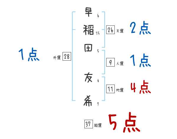 早稲田友希さんの画数の鑑定結果