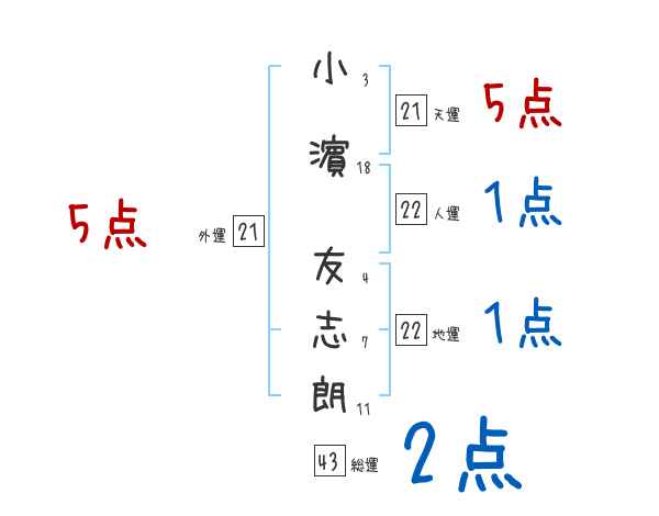 小濵友志朗さんの画数の鑑定結果