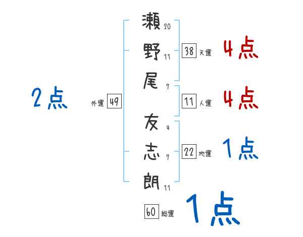 瀬野尾友志朗さんの画数の鑑定結果