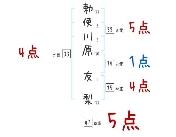 勅使川原友梨さんの画数の鑑定結果